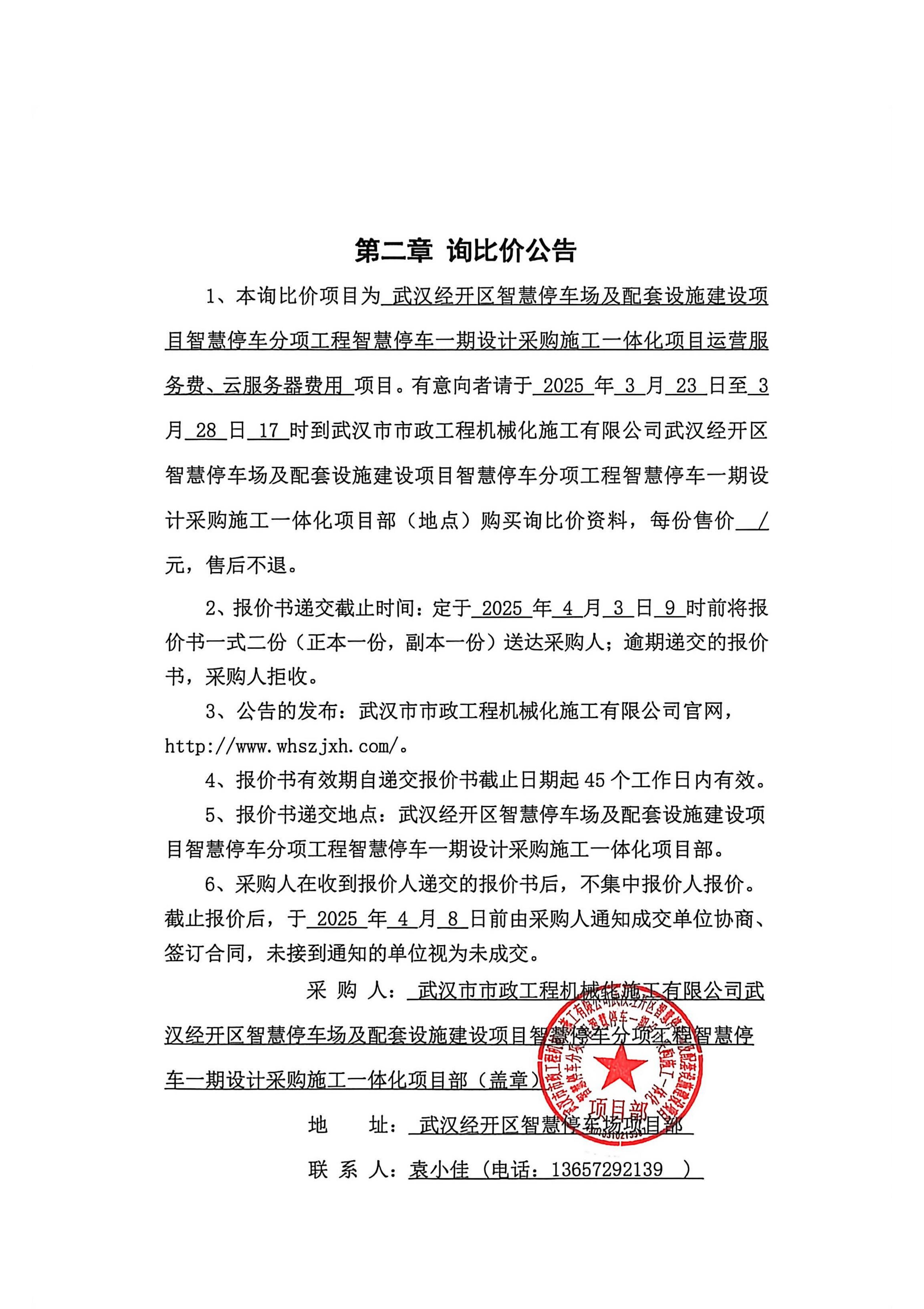 武漢經(jīng)開區(qū)智慧停車場及配套設(shè)施建設(shè)項目智慧停車分項工程智慧停車一期設(shè)計采購施工一體化項目運營服務(wù)費、云服務(wù)器費用詢價公告