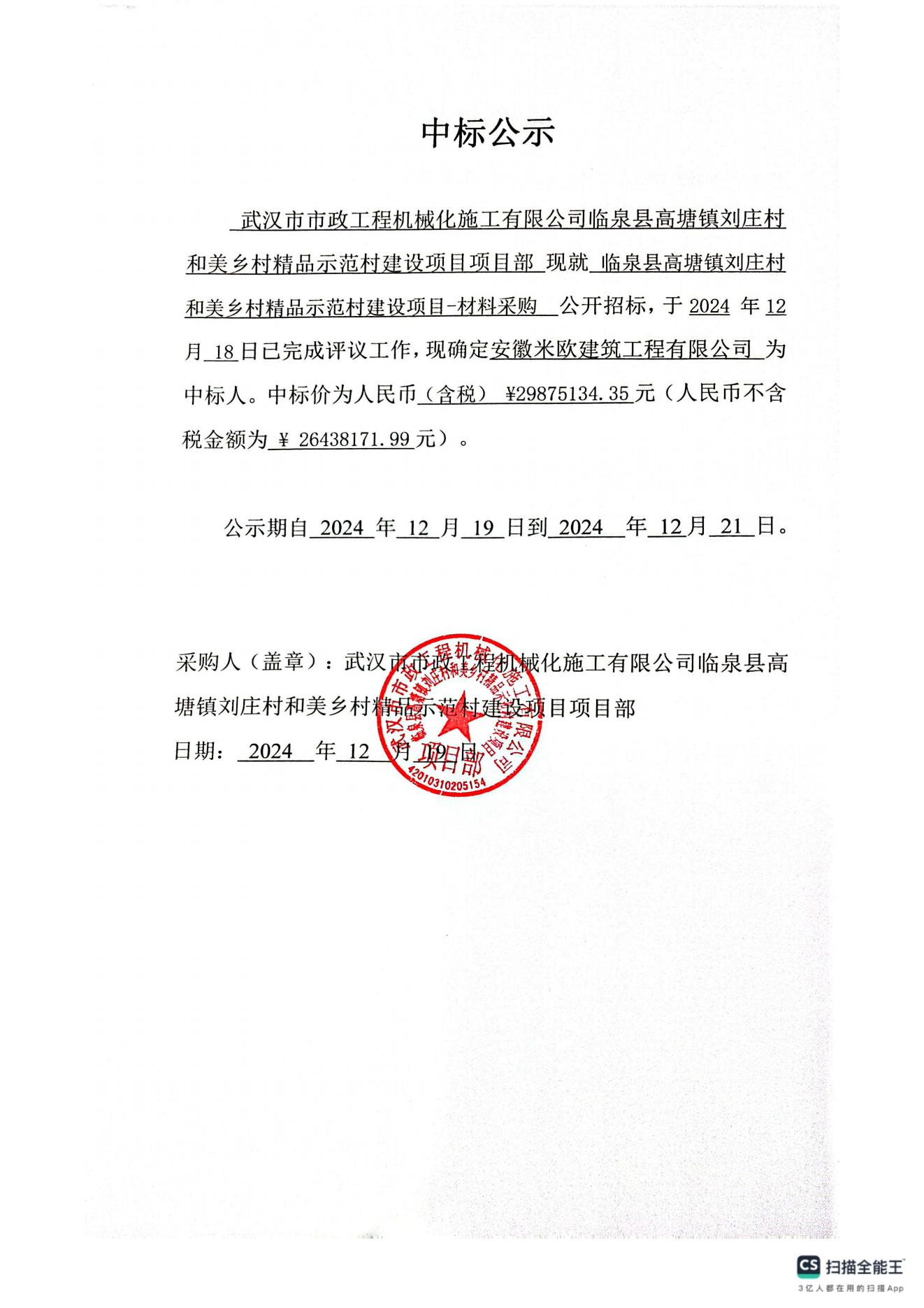 臨泉縣高塘鎮(zhèn)劉莊村和美鄉(xiāng)村精品示范村建設(shè)項目-材料采購中標公示